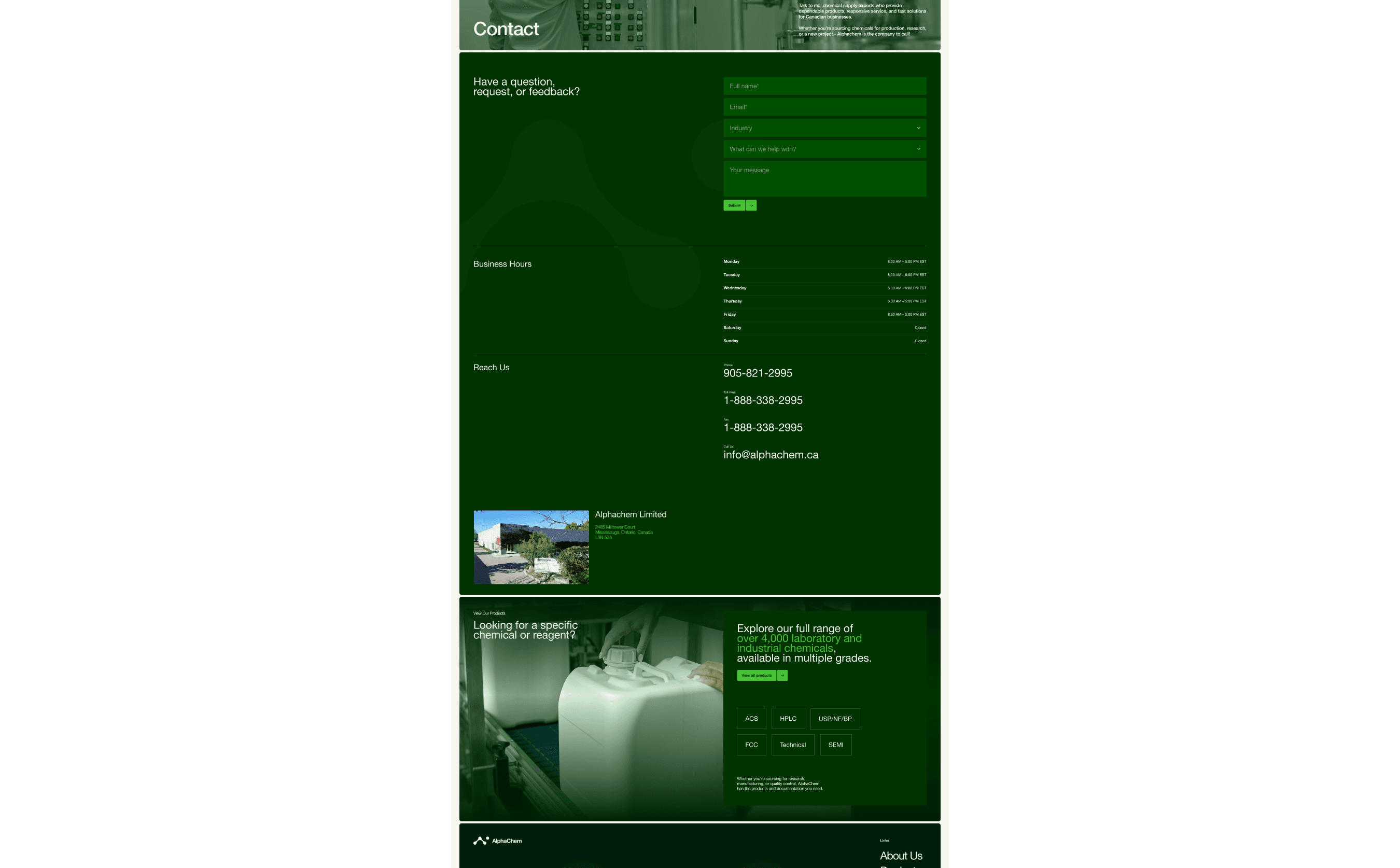 Alphachem is a Canadian-owned supplier of laboratory and industrial chemicals, delivering reliable products and responsive service to businesses nationwide since 1991.