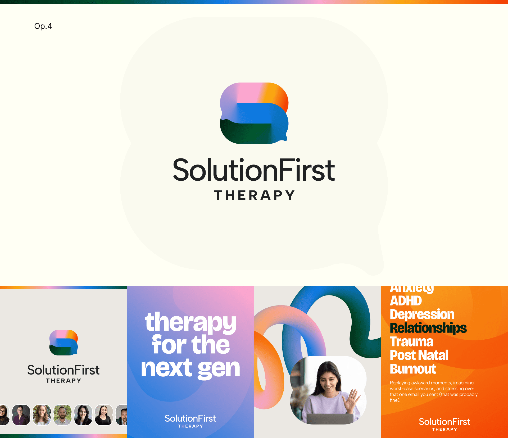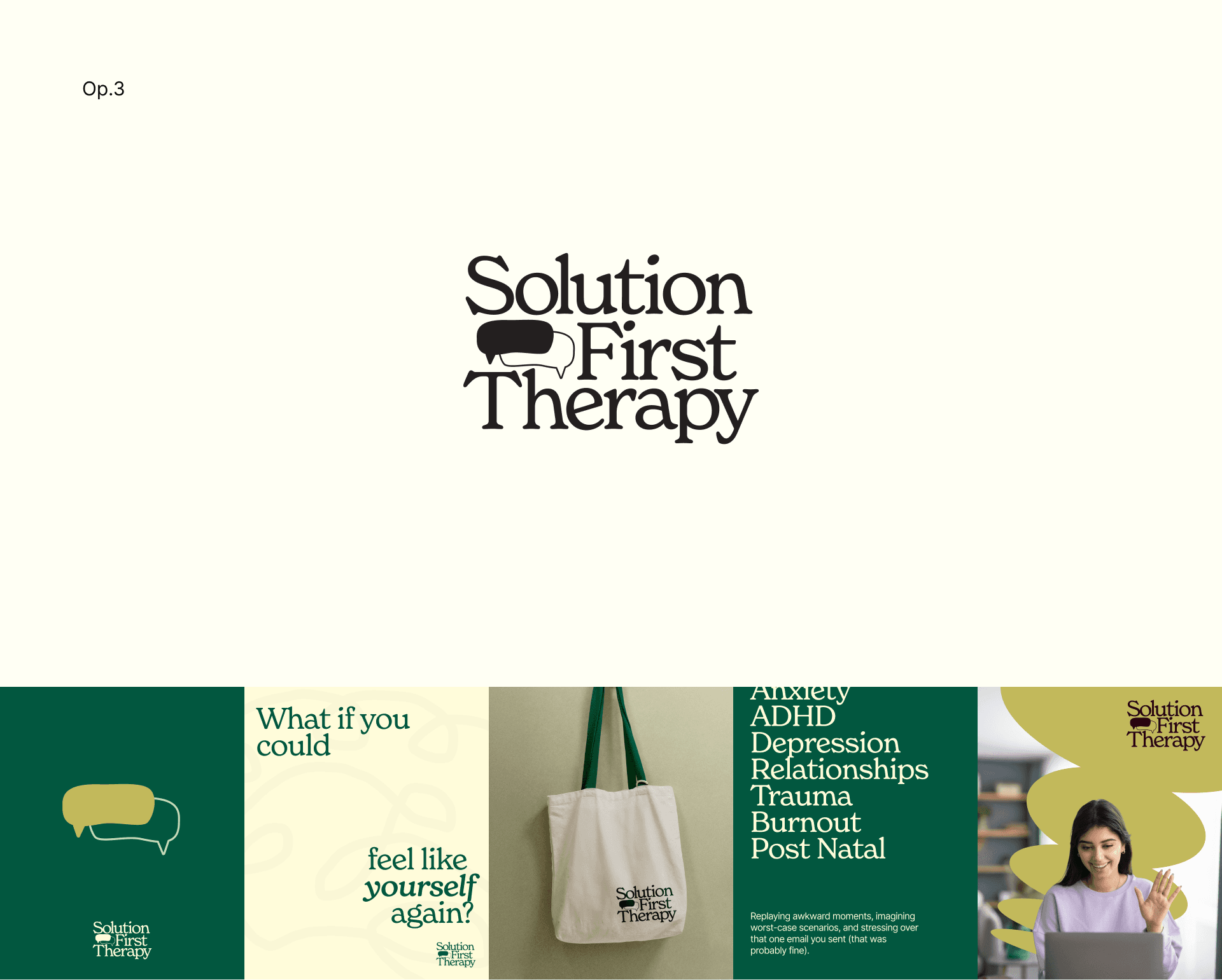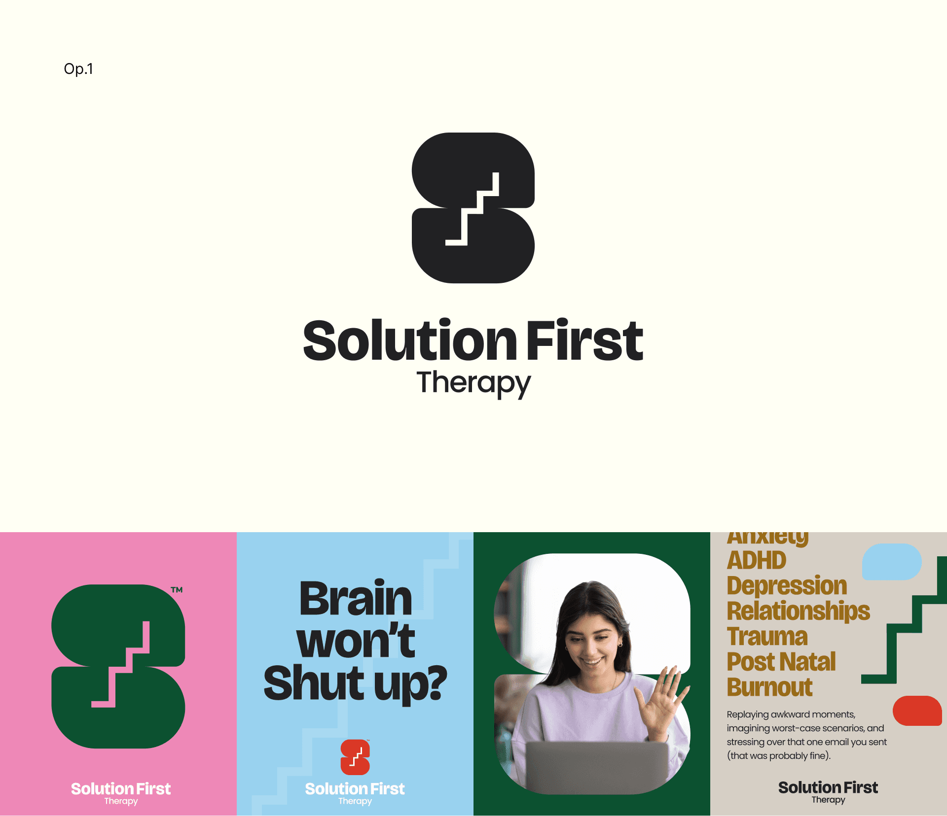 Being virtual-first therapy I wanted the emblem shape to look like nothing anyone has seen before. Its quirky, a bit odd but unforgettable. Breaking pattern of default/cliche therapy motifs in order to stand out.