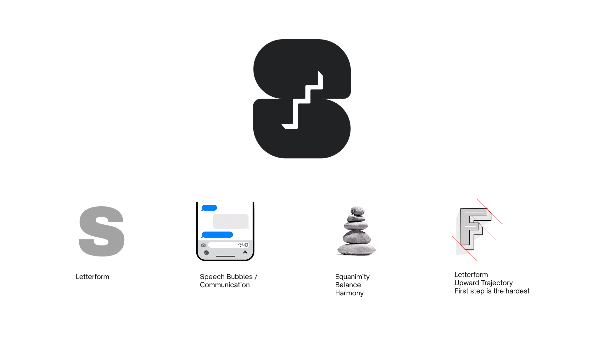 The F letter-form doubles as a staircase, representing an upward trajectory.